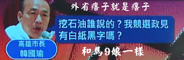 韓國瑜就是外省痞子,和馬9娘一樣,當了2屆總統吃終身俸,這就是中國國民黨,吃定台灣人?